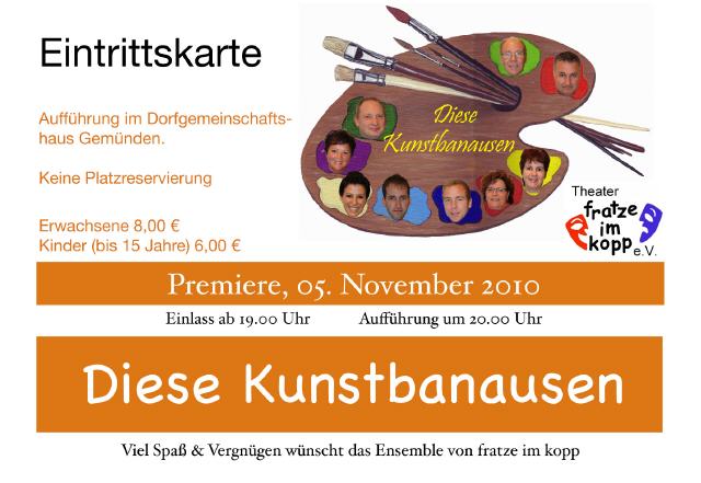 Im Rahmen der Theateraufführungen wurden von uns viele Lose verkauft, mit welchen man am Ende der Vorstellungen immer den "Arsch des Tages" gewinnen konnte. Es handelte sich hierbei um das Gemälde "Die Nöfrötöte" aus dem Theaterstück "Diese Kunstbanausen".
