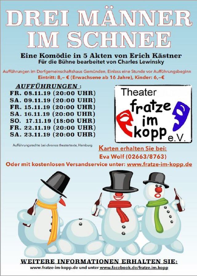 "Drei Männer im Schnee" von Erich Kästner in einer Bühnenfassung von Charles Lewinsky, Komödie un 5 Akten